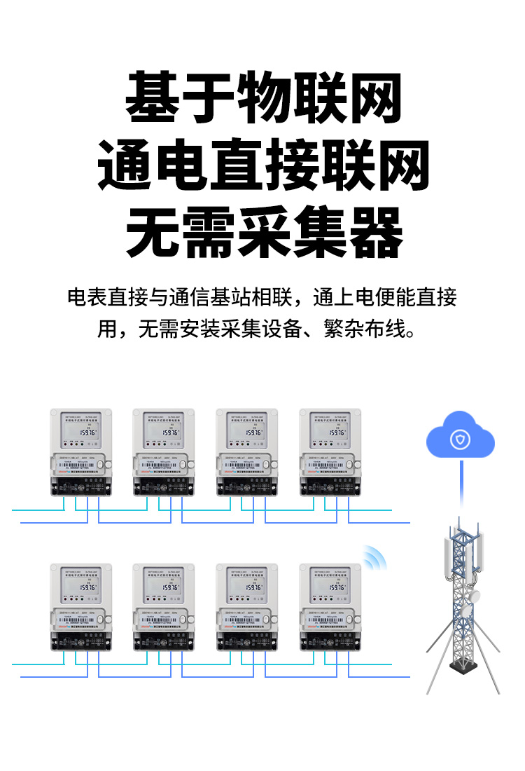 這種抄表方案無需額外的配集中器和采集器,沒有區(qū)域限制,不同的城市的電表也能夠?qū)崿F(xiàn)輕松抄表,只要有手機(jī)信號(hào)的地方就可以實(shí)現(xiàn)抄表,直接通過手機(jī)信號(hào)將電表里面的數(shù)據(jù)直接傳輸?shù)胶笈_(tái)中,這種電表成本比較貴,如果是集中安裝的電表,為了成本考慮,我們并不建議用這種抄表方案,圖如下: