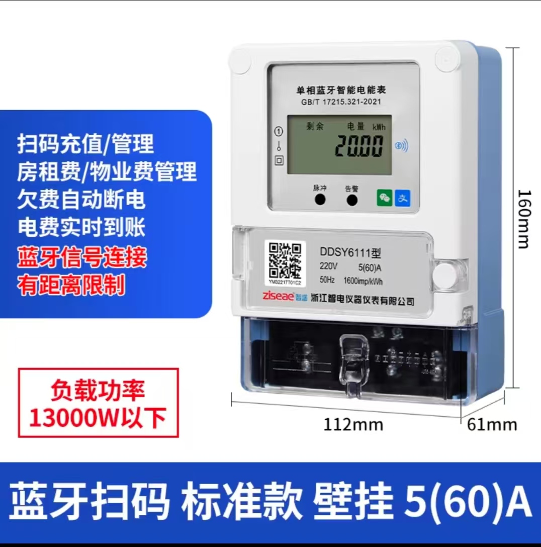 -每個(gè)智能電表都有一個(gè)額定電流值(如10A、20A、40A、60、80、100等),這決定了它能夠安全處理的**持續(xù)電流.-例如,對(duì)于單相電表,如果額定電流為20A,則理論上它可以支持的最大功率約為4.4kW(220Vx20A)。