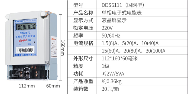 型號:DDS6111單相電表(國網型 液晶)