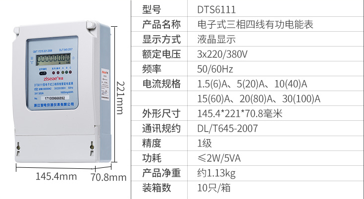 DTS6111三相四線、DSS6111三相三線型三相電子式電能表是采用集成電路,16位A/D轉(zhuǎn)換、數(shù)字乘法器、應用數(shù)字采樣處理技術及SMT工藝,根據(jù)工業(yè)用戶實際用電狀況所設計、制造的儀表。該表采用獨立三單元計量模塊能測量三相正向和反向的有功電能。計量誤差具有穩(wěn)定性。