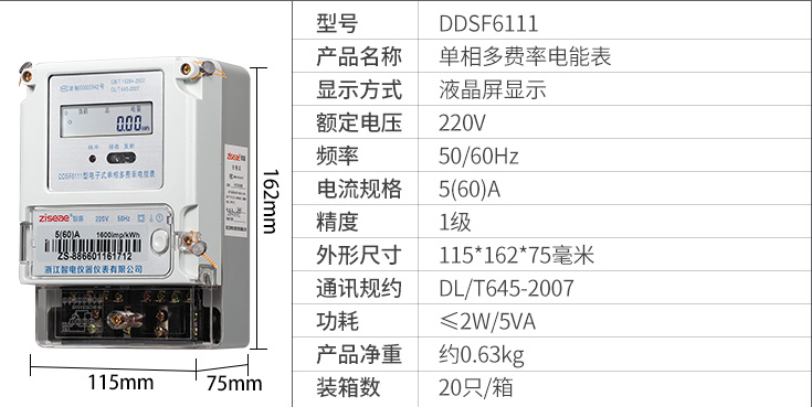 DDSF6111單相電子式多費率電能表,采用單片機處理系統設計而成,具有電路簡單、可靠性高、成本低等優點。該產品軟件、硬件、結構設計技術先進,計量精度高,結合單片機資源,實現電能分時計量,具有紅外及RS-485通信功能,抗干擾、防攻擊性能好,工作溫度范圍寬,能長期穩定可靠工作。該產品各項性能指標符合國家GB/T 17215-2002《1級和2級靜止式交流有功電能表》、GB/T 15284-2002《復費率(分時)電能表特殊要求》、DL/T 645-2007《多功能電能表通信規約》等標準的技術要求。