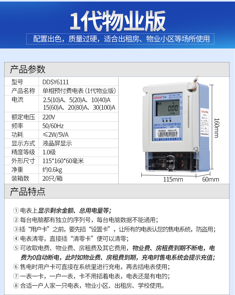 5、一表一卡:用戶持有的IC卡不能互換,遺失時(shí)應(yīng)到供電部門(售電處)補(bǔ)購(gòu)一張。